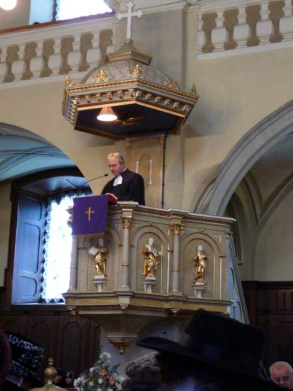 Every church we saw in Slovakia had a crow’s nest from which the sermon is preached. In this photo, we sat on the right side underneath the arch.