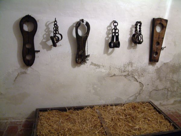 In this cell manikins demonstrate how prisoners were tortured.