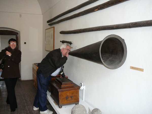 There are other artifacts on display at the prison that are less gruesome. This large megaphone really does make your voice sound big and loud. When this photo was taken, I said, “People of Slovakia. Attention! You are surrounded by American tourists. We have digital cameras. Surrender and show yourselves.”