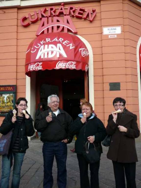Today will be our last full day with the Miklus family in Presov. The day begins with a good breakfast. This breakfast sandwich, which is like a grilled cheese sandwich, is made in a special toaster. Note the little cut out cheese shapes that circle the plate. Presentation is as important as the taste.